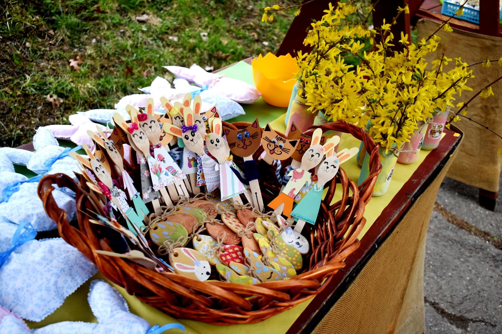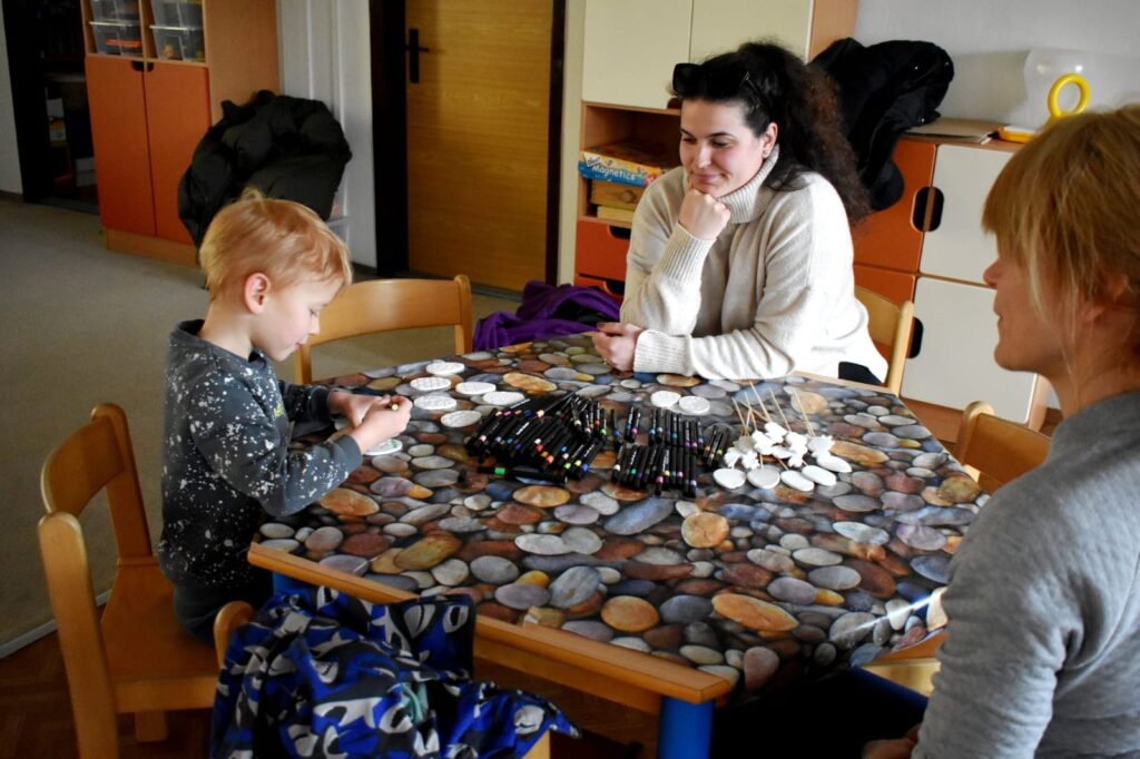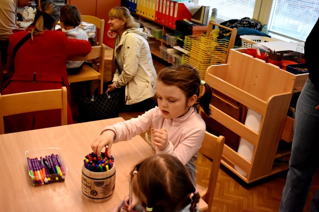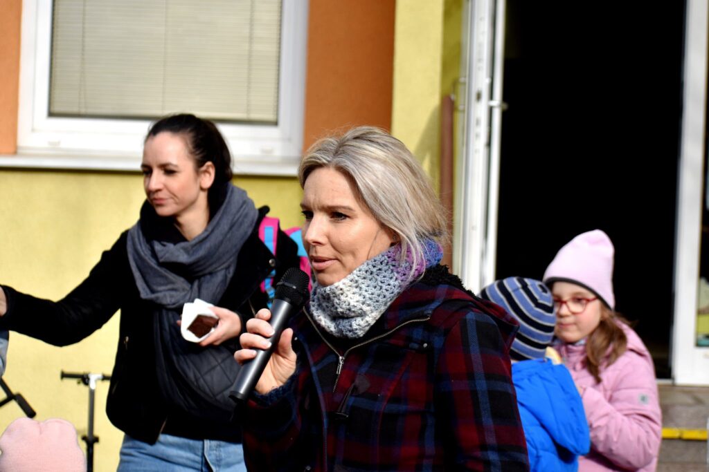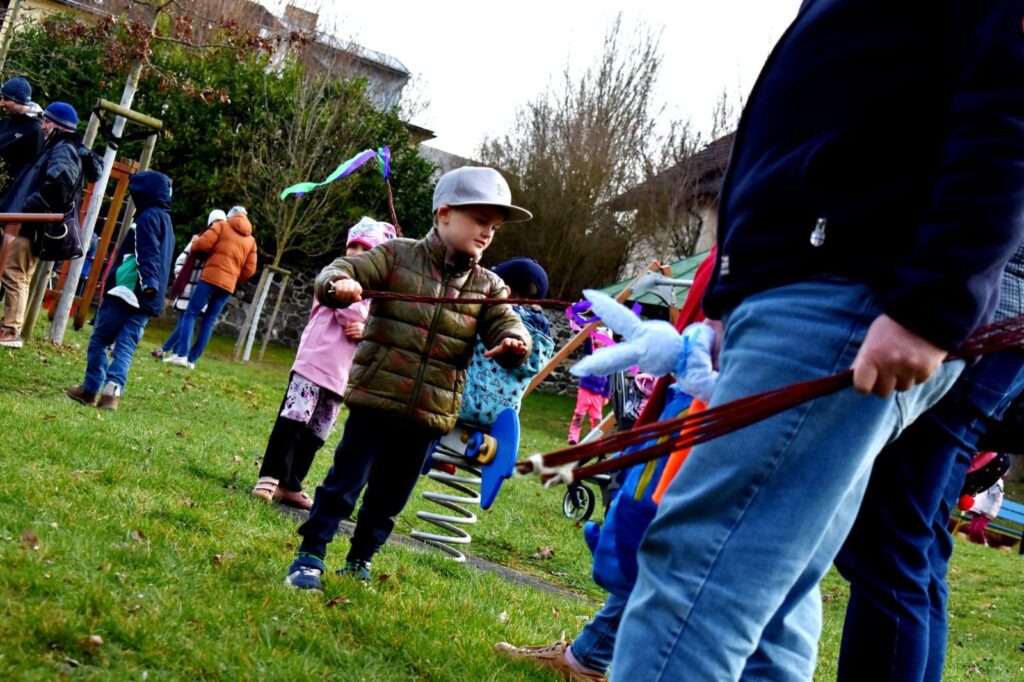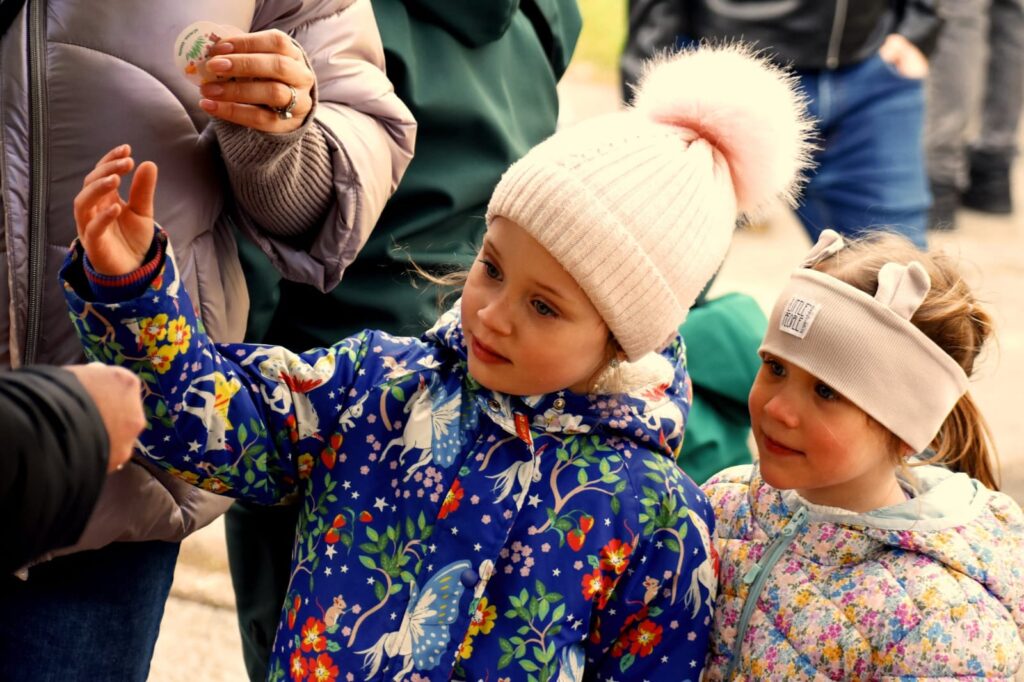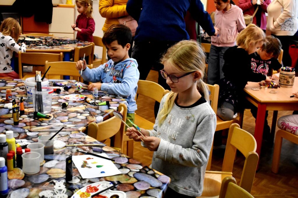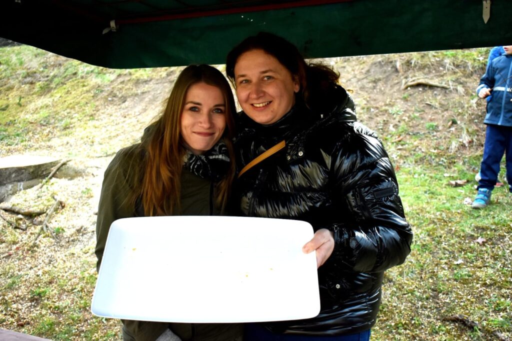 Děti s rodiči si mohli společně připomenout velikonoční tradice – vyzkoušeli si pletení pomlázky a zapojili se do tvořivých dílniček uvnitř budovy.